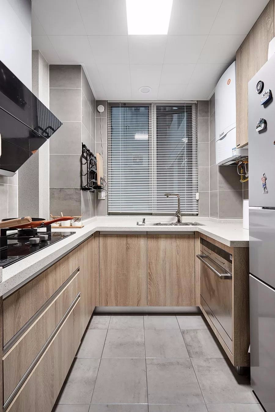 有2個臥室,還有1個小書房,布局真的很不錯。整個家大量搭配了原木家具,清新又自然,文藝又有格調,好喜歡這種休閑又放松的家居氛圍。很多人問我客廳刷什么顏色的乳膠漆好,我覺得淺灰色不錯,客廳采光特別的給力,好喜歡休閑飄窗的設計,視野十分開闊,看書休憩都特別的舒服。淺灰色調不會顯得過于沉穩,在布藝中加些暖色,會更顯休閑溫馨感。軟裝搭配細節放大看一看,哈哈,質感真的不錯,黃色抱枕真的超愛了!搭配個小邊幾,擺上綠植,清新又養眼,裝修的時候墻面別忘了預留插頭,平時充電會更方便些.主臥的采光也特別棒,整個空間氛圍清新又自然。很喜歡床頭木質護墻板的設計,和臥床、床頭柜融為一體,十分的協調。廚房雖然面積不大,但也打造出U型布局,動線合理,操作方便。很喜歡這種時尚中融入清新色調的搭配了。冰箱也有了歸屬感!