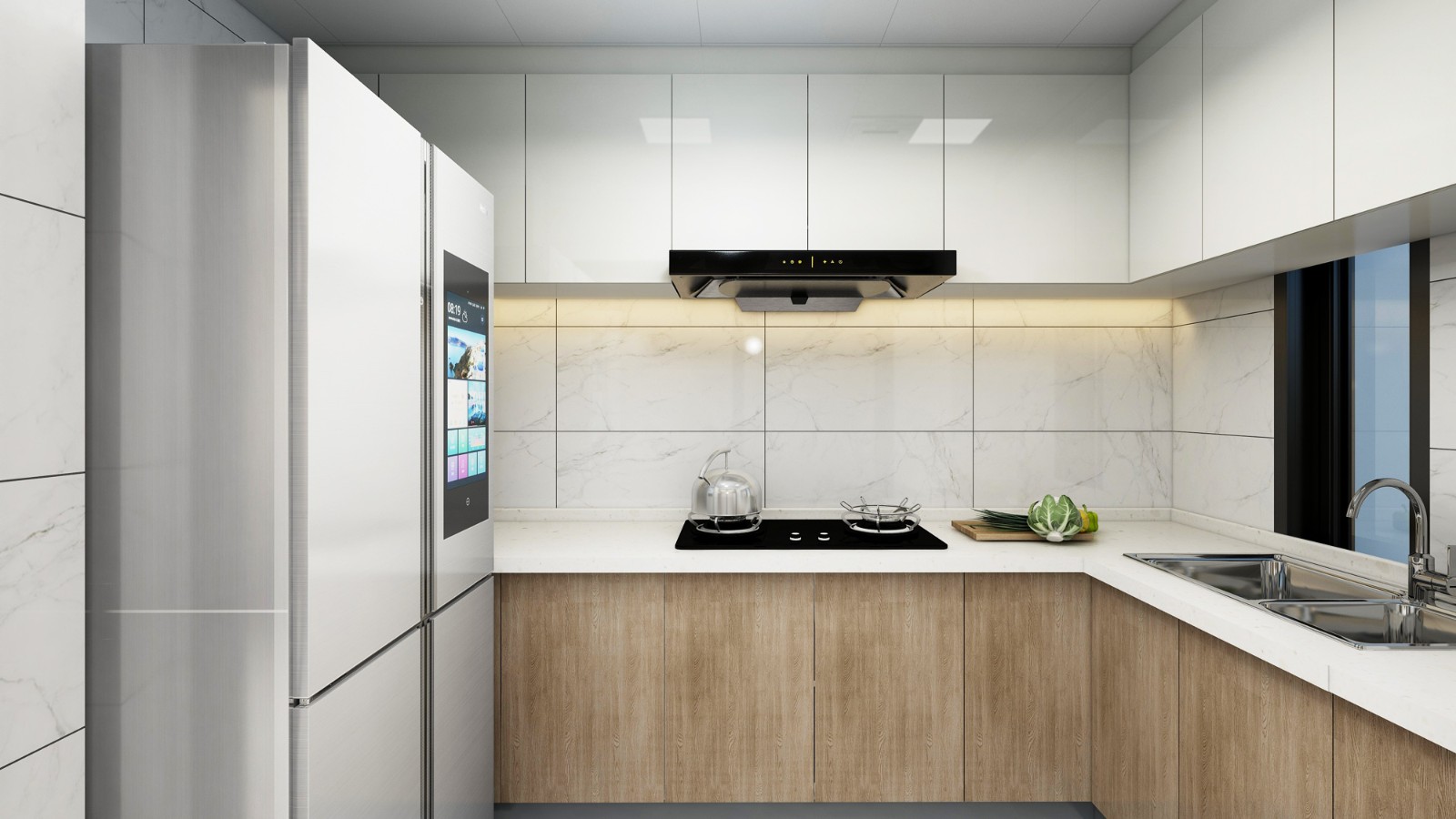 廚房頭頂上的吊柜與櫥柜,足夠的收納空間讓整個廚房變得十分簡潔,讓你愛上烹飪。