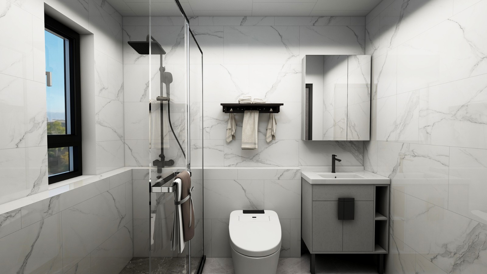 衛生間采用二分式隔斷,透明的玻璃隔斷,即使是衛生間也不會顯得十分狹窄。