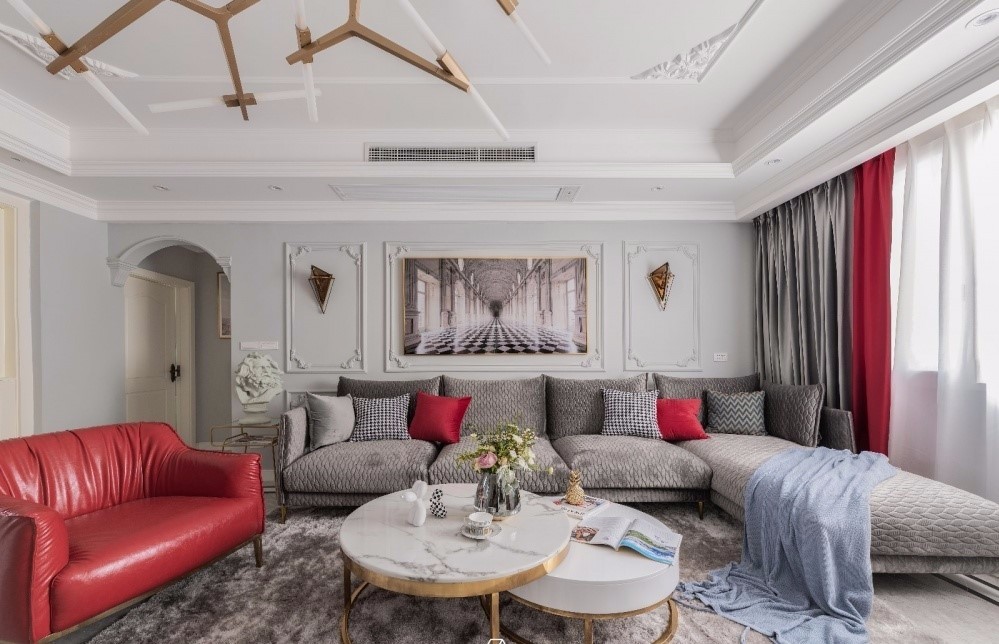整個空間大面積使用灰色調,而大膽的紅色加入無疑是為了渲染活躍的氣氛。