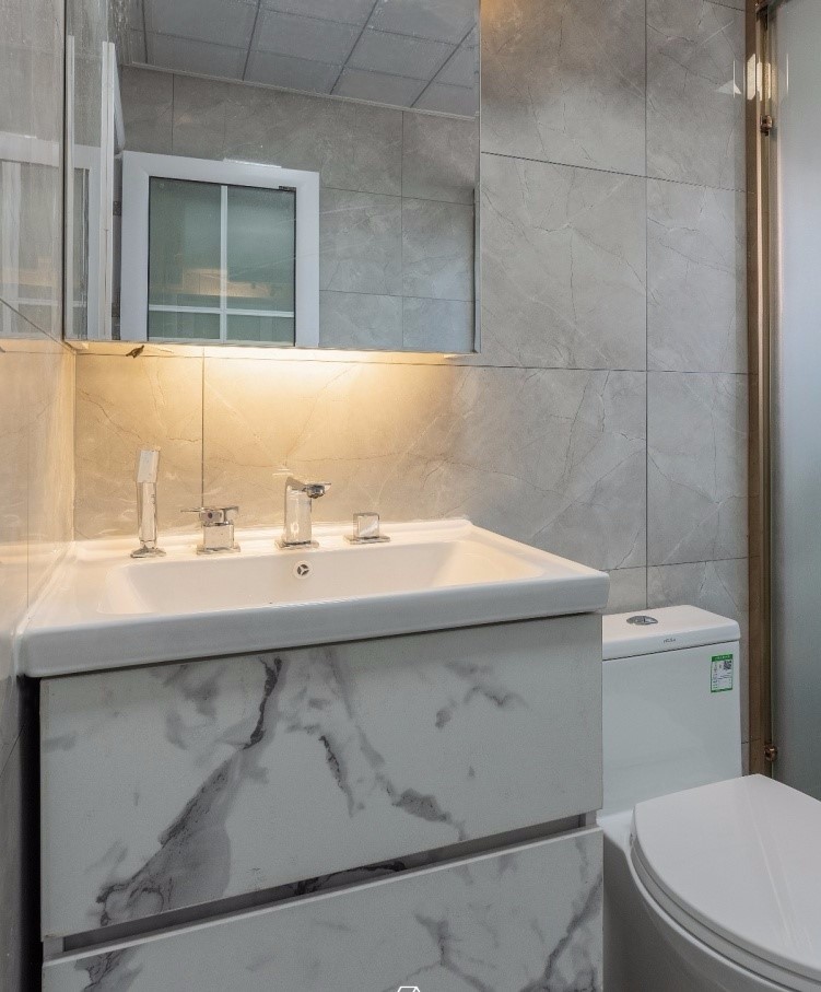 衛生間采用干濕分離,大理石花紋凸顯輕奢主題。